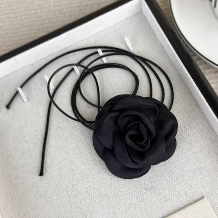 18K gold plated heart pendant necklace on black rope choker worn by a woman
