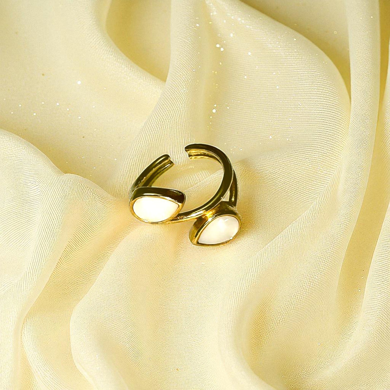 Upgrade your accessory game with this elegant gold-plated open ring featuring dual white teardrop stones. Perfect for both everyday wear and special occasions, this adjustable statement ring adds a touch of luxury and modern style to your look. Ideal gift for women who love minimal yet classy jewelry.