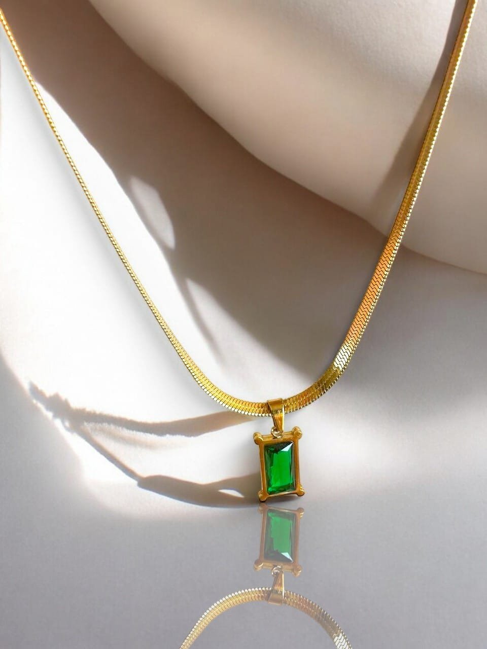 This Chain refers to Snake design that is tightly attached with each connector And made a snake Skin Design an above this a Green Stone pendent which is ” Sone Pe Suhaga”